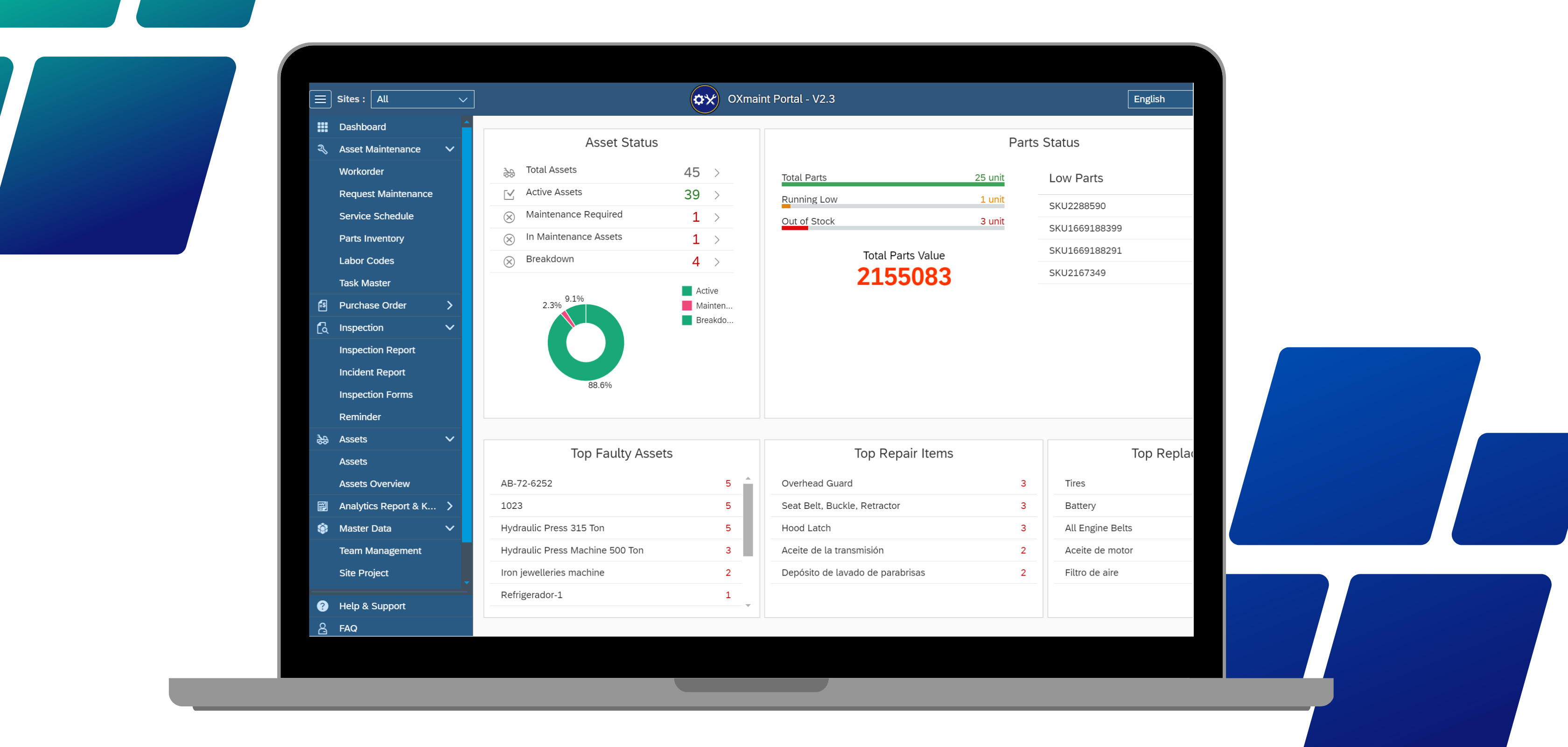 Plan preventive maintenance with OX-Maint. Your field staff and maintenance teams are connected in real time. Report, track and coordinate repairs.